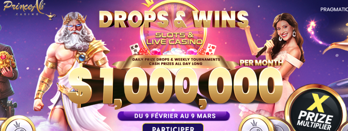 Les bonus du casino Prince Ali sont particulièrement généreux. Il en a en grandes quantités. D'ailleurs, vous feriez bien de vous inscrire à leur newsletter pour nen rater aucun. Cest particulierement utile car en plus des bonus connus, il en arrive de nouveaux tout le temps.